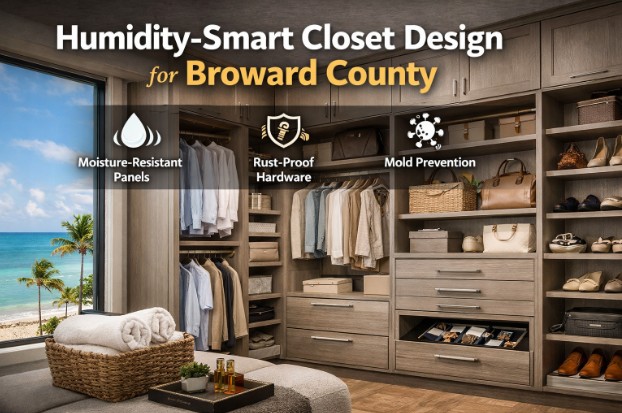 Broward County master bedroom closet ideas for 2026 should prioritize humidity-resistant panels, sealed edges, and corrosion-resistant hardware because coastal air and high humidity can warp panels and corrode components within two years.