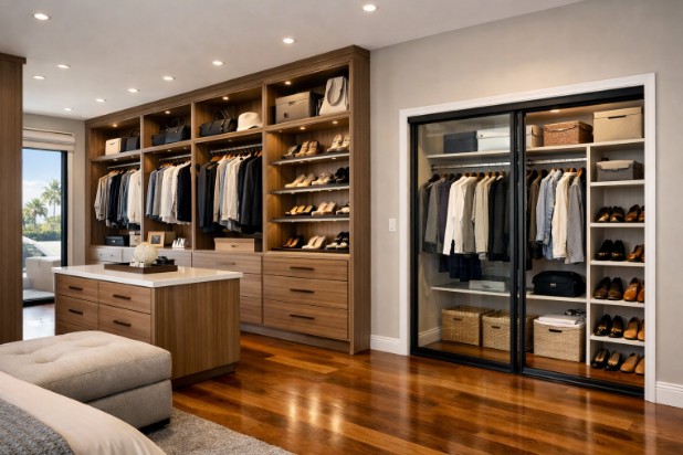 A walk-in closet performs best when the design maintains a 36-inch clear aisle and avoids dead corners, ensuring a smooth daily dressing routine.